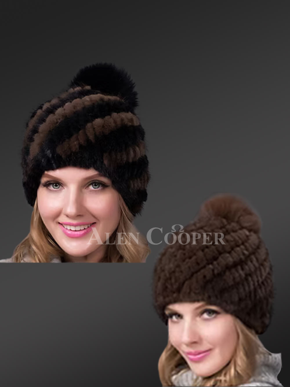 - Luxury hat of mink fur looks fascinating with a lovely pompom of fox fur at the top