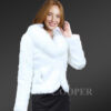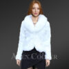 • Elegant women’s blazer of authentic rabbit fur in immaculate white shade