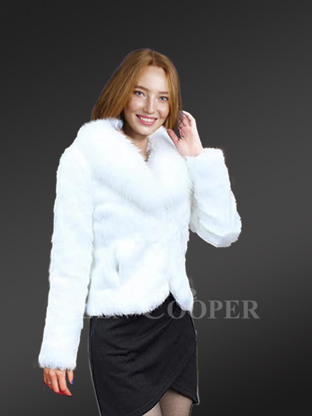 Without a doubt, this is a versatile outfit. Its impeccable white shade makes it suitable for a wide variety of colors. One may wear it at any time of the day; it never looks out of the place. This waist-length blazer of authentic rabbit fur is equally befitting for the casual, semi-formal or formal events. One may pair it with different types of women’s bottom-wear starting from the mini skirt to jeans.