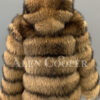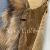 This handcrafted luxury coat features tiered pattern of raccoon pelts all over the body and sleeves. This designing style certainly attributes to this coat’s impressive looks. Furthermore, the use of full skin pelts offer excellent protection against the cold air and keeps one warm. The hook-and-eye fasteners further add to one’s comfort. These fasteners are durable and easy to use. The hood is another impressive feature of this coat. It encases the head and embraces the neck in comforting furry warmth.
