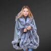 Special Features of Womens Poncho of Lambskin with Fox Fur in Collar, Frontline and Rim