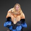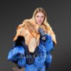 • Posh poncho of Red fox fur looks exquisite ina combination ofroyal blue, navy blue and reddish orange shades